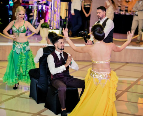 Profund senzual, incarcat de magia basmelor despre Alladin, matasuri, aur si mirodenii, dansul oriental ( belly dance ) aduce intotdeauna o nota de exotism evenimentelor pe care doriti sa le sarbatoriti impreuna cu cei dragi, intr-o atmosfera de desfatare si inedit. Costumele in culori vii, graitoare, si maiestrit ornamentate intregesc expresia de erotism a acestui dans vesel, plin de cochetarie si de pofta de viata. In interpretarea Trupei The Sky, momentele artistice de dans oriental ( belly dance ) devin cu adevarat memorabile si va ofera o petrecere de neuitat, despre care veti avea multe de povestit cu prietenii si invitatii dumneavoastra.