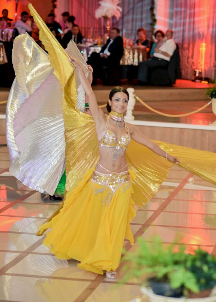 Un dans plin de creativitate si de voluptate, in care poezia miscarilor devine o metafora pentru instrumentele de percutie – asa arata spectacolul de dans oriental ( belly dance ) pe care l-am pregatit pentru dumneavoastra, cu mult suflet si dedicatie, pentru a ne bucura impreuna de emotia si vraja ritmurilor orientale.