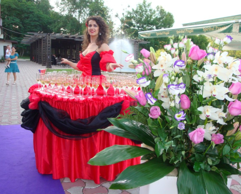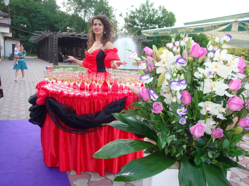 Delicatesele culinare și licorile bahice vor fi puse în valoare de frumusețea Mesei Divine, creând o atmosferă deosebită și unică. Invitații dumneavoastră vor fi serviți într-un stil rafinat de personaje elegante, care vor adăuga evenimentului un aer de lux și exclusivitate.